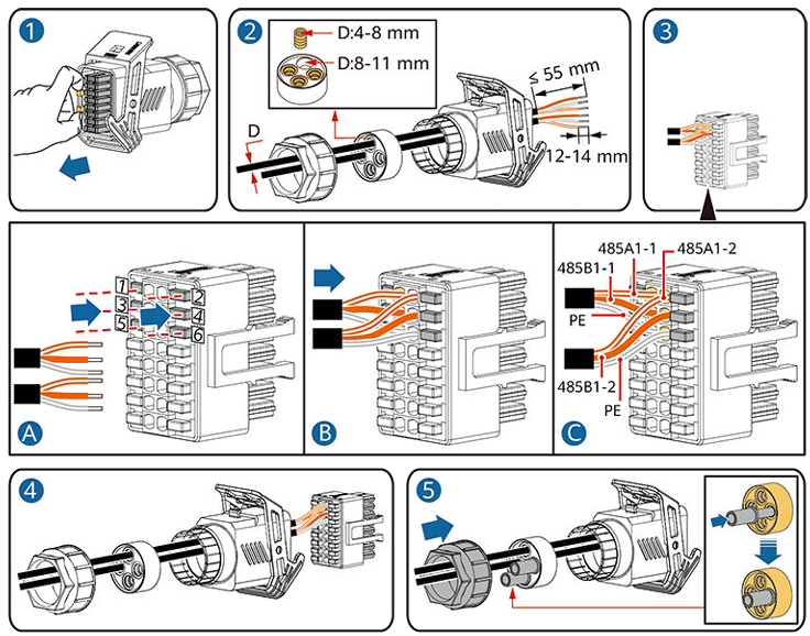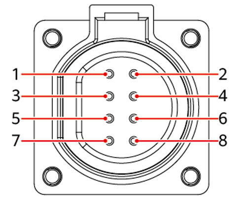 De COM-connector van de eenfase omvormer heeft 8 pinnen: